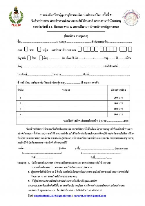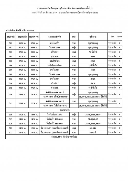 การแข่งขันกรีฑาสูงอายุชิงชนะเลิศแห่งประเทศไทย ครั้งที่ 21 ณ จังหวัดสกลนคร