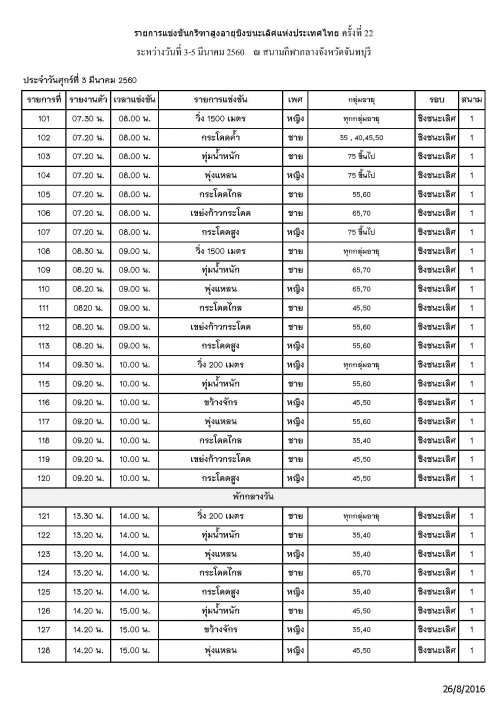 Albums 22nd Thailand Masters Athletics Championships Download Entry Form 22nd Thailand Masters Athletics Championships March 3-5 , 2016 Chanthaburi Stadium, Chanthaburi Calendar S M T W T F S 1 2 3 4 5 6 7 8 9 10 11 12 13 14 15 16 17 18 19 20 21 22 23 24 25 26 27 28 29 30 31 Video Albums Links สมาคมกีฬาผู้สูงอายุไทย (สสท.) TOMG03 Asian Masters Athletics Association การกีฬา สำนักงานกองทุนสนับสนุนการสร้างเสริมสุขภาพ (สสส.) BoxZa Social Network